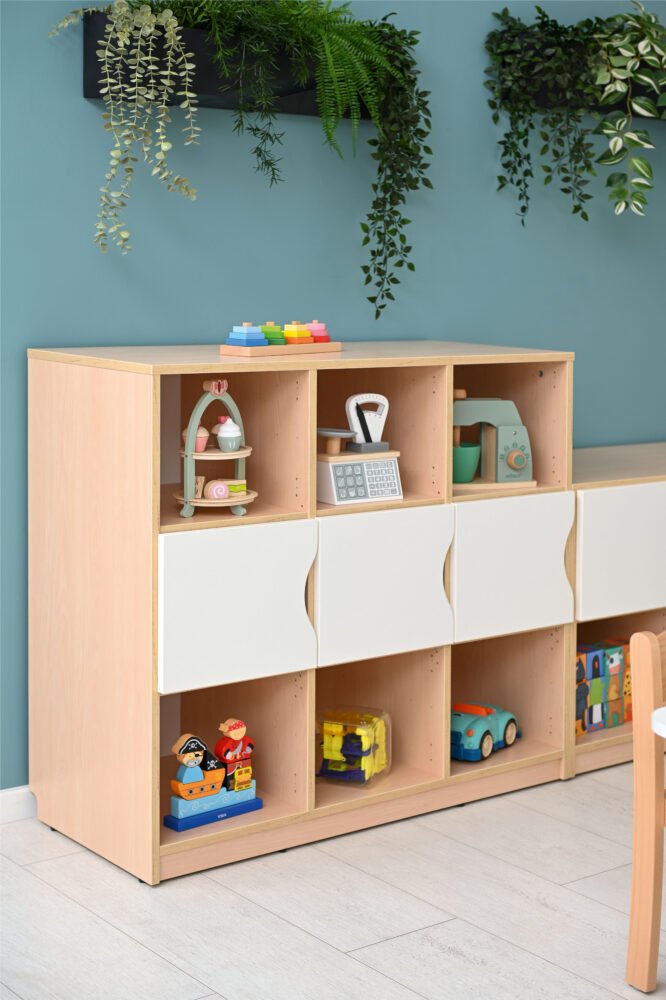 Έπιπλο στιβαρό αποθήκευσης παιχνιδιών και βιβλίων με χωρίσματα και πόρτες.